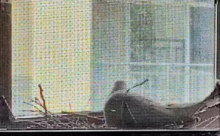 隔着窗户观察外面的鸟窝